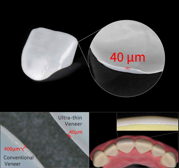 據(jù)悉,摩方精密利用高精度增材制造技術(shù),幫助研發(fā)團(tuán)隊(duì)將氧化鋯牙齒貼面厚度,從全球400微米以上的機(jī)加工水平,降到最低可達(dá)40微米左右,且兼具強(qiáng)韌性。這種極薄牙齒貼面,可以讓患者不磨牙或盡量少磨牙,以極微創(chuàng)甚至可能無(wú)創(chuàng)的方式,實(shí)現(xiàn)牙齒表面美學(xué)重建和修復(fù)。這對(duì)牙科行業(yè)和患者來(lái)說(shuō)都是一大利好。
