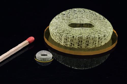 摩方超高精密3D設(shè)備打印的一個尺寸略大于火柴頭的鳥巢模型,可以看到每一根精細的柱子。