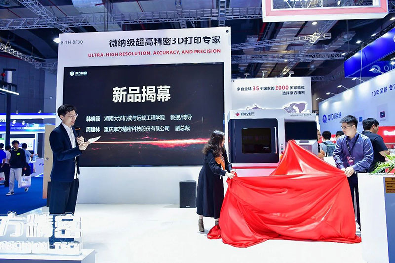 近年來,摩方精密持續在設備制造方面不斷創新和升級,瞄準技術空白,滿足市場需要,尋找高精度和高效率的雙重需求平衡點。本次新品發布會推出了極致創新性的復合精度光固化3D打印技術,并展示了一系列全新設備、材料和解決方案,為精密電子、生物醫療、高端通訊、半導體等高精密行業的創新應用帶來高速靈活、降本增效的全新解決方案。并且非常榮幸地邀請到了湖南大學機械與運載工程學院韓曉筱教授為新品發表致辭與揭幕。
